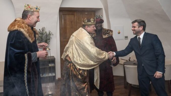 Kašpar, Melichar a Baltazar označili dveře nápisem K+M+B+2024 zajišťujícím ochranu před neštěstím a pohromou a vybrali příspěvky do pokladniček Tříkrálové sbírky. Do ní přispěli i členové vedení města.