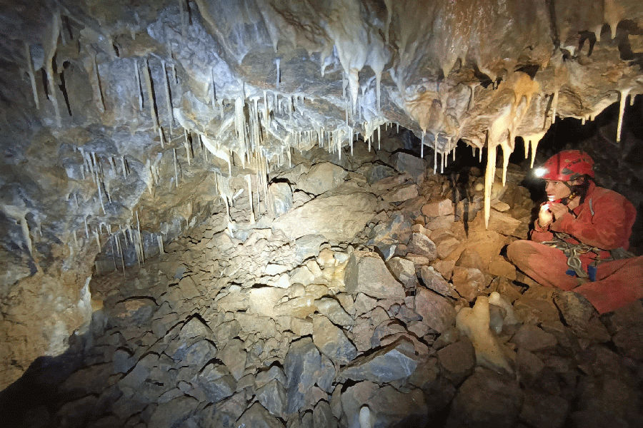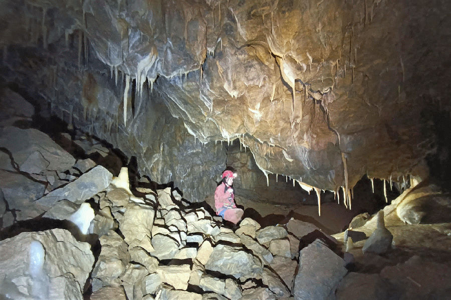 BLANSKO – Speleologové v Moravském krasu na Blanensku objevili v Hedvábné jeskyni nový sál bohatě zdobený krápníky, který pojmenovali Mauglího síň. Nalezli jej před svátky po vyšplhání asi padesátimetrového komínu v dosud neprobádané části podzemí.