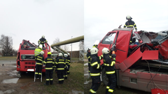 „Operační důstojník na místo vyslal dvě družstva hasičů, kteří na místě uzavřeli komunikaci a pomohli z kabiny zraněnému řidiči. Toho pak předali do péče posádky zdravotnických záchranářů ZZS KHK,“ sděluje mluvčí hasičů Martina Götzová.