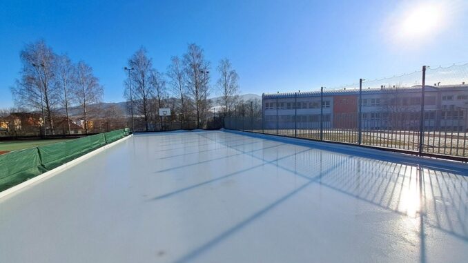 Ledová plocha na hřišti u sídliště Palackého. Foto: město Valašské Klobouky