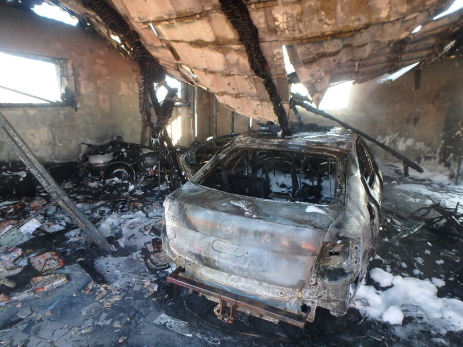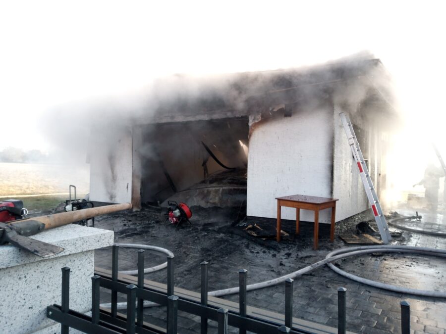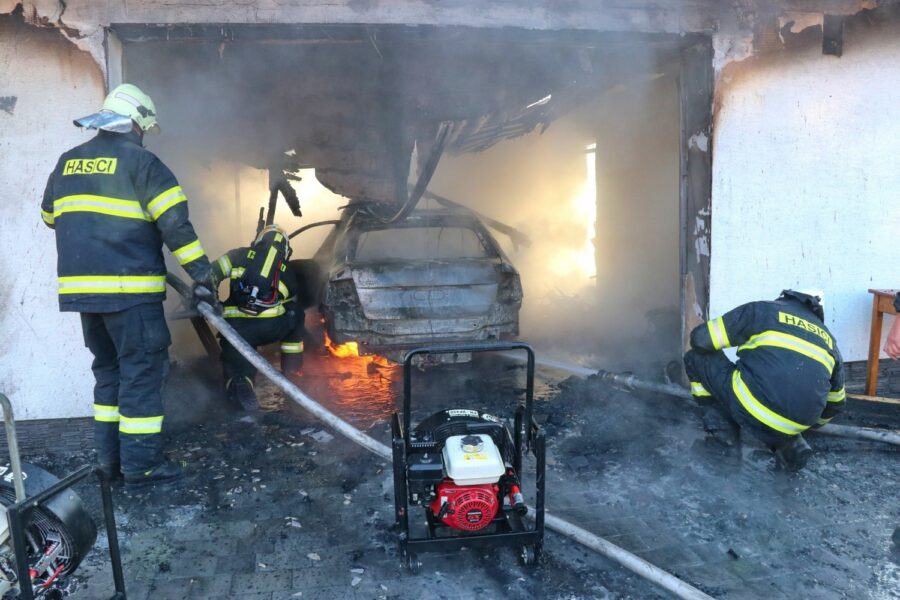 „Uvnitř bylo zaparkované jedno osobní vozidlo a množství dalšího vybavení. Oheň také přímo ohrožoval blízký rodinný dům, který začali hasiči hned po příjezdu chránit a ochlazovat. Před 10. hodinou ohlásil velitel zásahu likvidaci požáru. Hasební zásah byl veden třemi proudy, včetně jednoho s pěnou, protože ze zasaženého auta v garáži unikaly pohonné hmoty,“ sděluje mluvčí hasičů Martina Götzová.