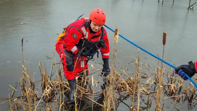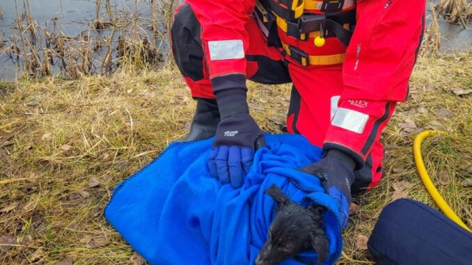 Psa za pomocí kolegů a jistícího lana dostali společně zpět na břeh. Promrzlé nebohé zvíře zabalili do teplé deky, poté jej v sobotu 27. ledna předali odchytové službě.
