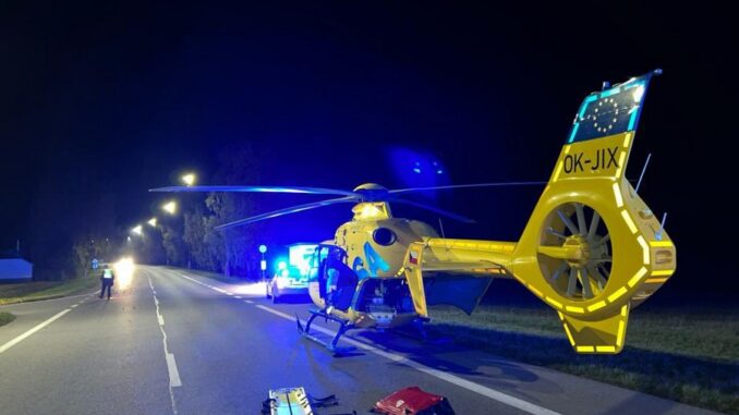 Chodec byl při příjezdu záchranářů v bezvědomí. „Muže bylo nutné zajistit mimo jiné žilním vstupem, napojením na dýchací přístroj a imobilizací páteře. S těžkým poraněním hlavy byl následně ve vážném stavu letecky transportován na ARO českobudějovické nemocnice,“ popsala Fajtlová.