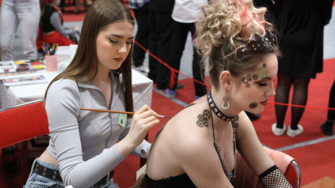 LANŠKROUN – Steampunkové účesy, make-up a malby na tělo, to byl lanškrounský Kalibr Cup 2024. Ve čtvrtek osmého února se utkaly ve Sportovní hale Střední školy a Středního učiliště Lanškroun žáci škol ve čtyřech disciplínách – účesová tvorba, make-up, nail-art a body-art.