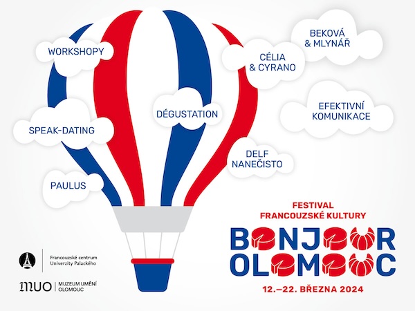 Festival Bonjour Olomouc se uskuteční od 12. do 22. března. Záštitu nad ním převzali rektor Univerzity Palackého Martin Procházka, primátor statutárního města Olomouc Miroslav Žbánek a hejtman Olomouckého kraje Josef Suchánek. Kompletní program najdete na webu, kde si můžete zarezervovat svá místa na jednotlivých akcích.