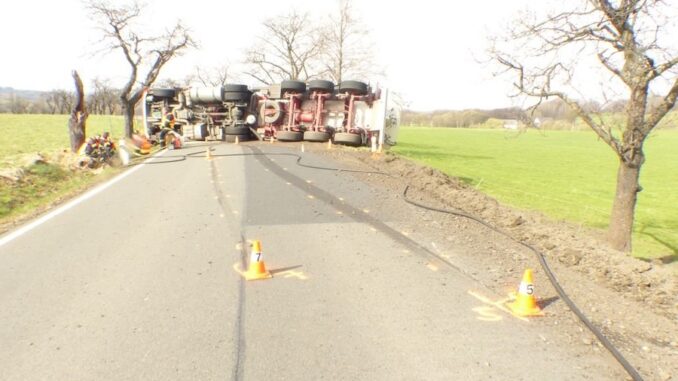 Včera chvíli před jedenáctou hodinou dopolední u Skorošic na Jesenicku na silnici první třídy číslo 60 havaroval tahač s cisternou. „Podle zjištěných informací 31letý řidič kamionu zn. Volvo s návěsem jedoucí ve směru na Javorník nedbal zvýšené opatrnosti a pravými koly návěsu najel mimo komunikaci,“ informovala policejní mluvčí Ivana Skoupilová. Řidič se snažil celou situaci zachránit tím, že se pokoušel dostat pravá kola cisterny zpět na silnici, při tom ale dostala celá souprava smyk, převrátila se na pravý bok a zůstala ležet napříč přes silnici. Kvůli nehodě zůstal hlavní tah na Polsko uzavřen více jak devět hodin.