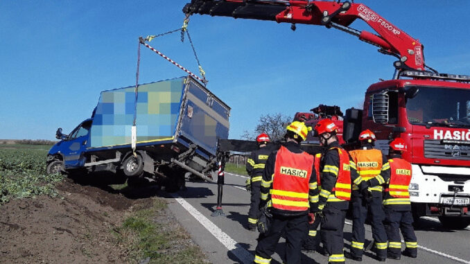 BRNO-VENKOV – V pondělí  v 6.30 hodin se u obce Klobouky u Brna stala dopravní nehoda nákladní dodávky. Hasiči vyprostil automobil z příkopu. Jednoho zraněného měli v péči záchranáři.