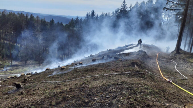 Odpoledne rozfoukal silný vítr ohniště ze včerejšího pálení v Biskupicích. To se následně rozhořelo a plameny se rozšířily na plochu o velikosti asi dvacet krát třicet metrů. „Zasahujícím jednotkám ztěžoval likvidaci požáru nejen silný vítr, ale i velmi strmý a nepřístupný terén. Hasiči museli zabránit rozšíření plamenů do lesního porostu. Vyšetřovatel hasičů na místě uložil blokovou pokutu,“ popsala mluvčí hasičů Vendula Horáková.