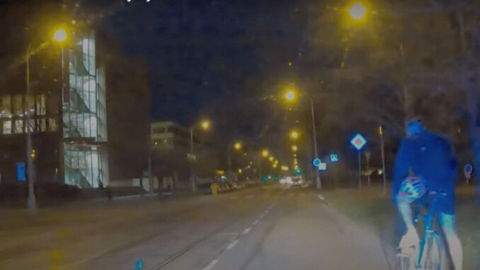VIDEO: Cyklistovi nefungovalo světlo, ve tmě byl téměř neviditelný