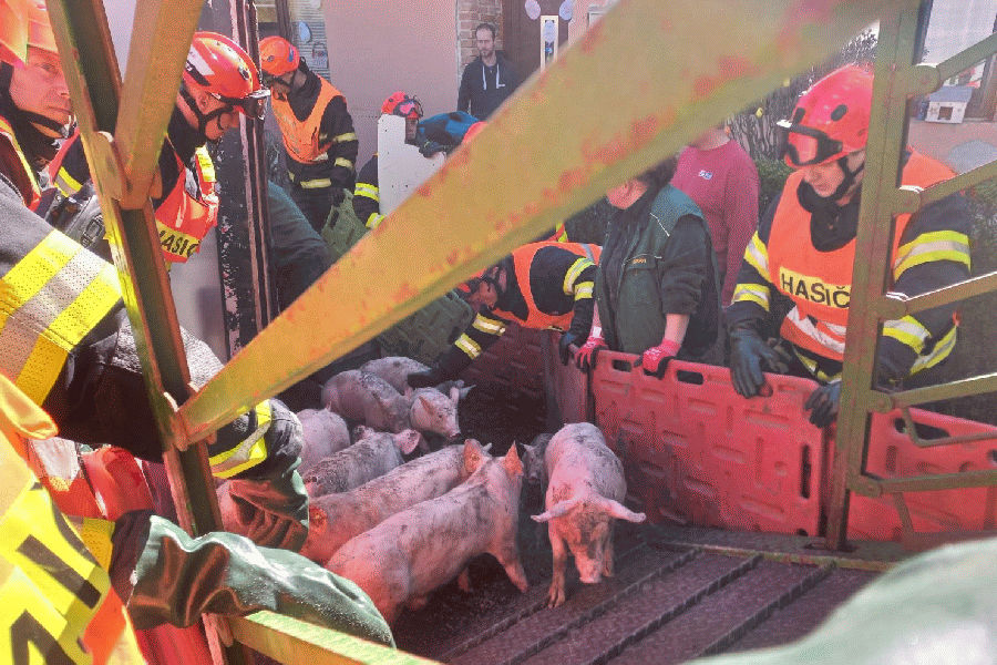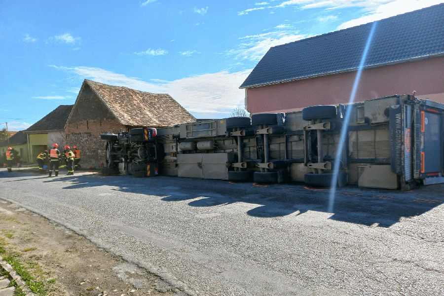 ZNOJMO – Ve čtvrtek krátce po půl deváté ráno zasahovaly čtyři hasičské jednotky v obci Hostěradice na Znojemsku u nehody kamionu, který zůstal ležet na pravém boku. Uvnitř vozidla zůstalo 500 selat. Řidiče odvezla sanitka záchranářů do nemocnice.