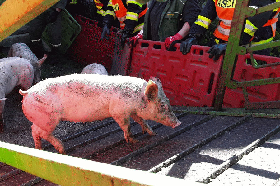 K nehodě vyjely čtyři jednotky včetně jednotky ze stanice Brno-Přehrada, která se specializuje na zásahy s přítomností zvířat. Při nehodě kamionu se zranil jeden člověk. Skončil v péči záchranné služby. „Byl zraněný pouze lehce. Po ošetření jsme ho převezli do Znojma k další péči,“ upřesnila mluvčí záchranářů Michaela Bothová. Jak popsal mluvčí hasičů Jaroslav Mikoška, uvnitř nákladového prostoru zůstalo uvězněno přes 500 selat. Hasiči si pomocí vyprošťovacího zařízení a rozbrušovací pily nejprve k selatům museli vytvořit přístup. Potom s pomocí pracovníků družstva pomáhali s přesunem zvířat do přistavených vleček. To trvalo přibližně dvě a půl hodiny. Veterinární správa na místě řešila uhynulé a zraněné kusy, kterých bylo několik desítek. Hasiči zabránili úniku provozních kapalin a zajistili prostor proti vzniku požáru. „Náš zásah v místě nehody skončil v 12.42 hodin. O odvezení kamionu se postará specializovaná firma,“ dodal Mikoška. Podle policejního mluvčího Davida Chaloupky není příčina nehody zatím zřejmá.