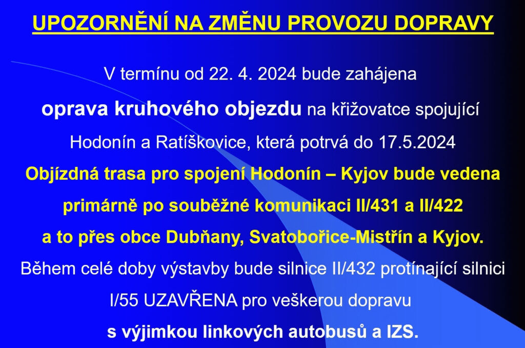 Hodonínskou okružní křižovatku silnic I/55 a II/432, přezdívanou pánovská, čeká oprava v termínu od 22. dubna do 12. května 2024. Během prací bude uzavřena odbočka na Ratíškovice i do centra Hodonína. Silnice I/55 bude průjezdná kyvadlově a provoz budou řídit semafory. „V zimním období došlo na této křižovatce k poruše vnitřního prstence vlivem provozu. Porucha se projevila prosednutím žulové obruby do původní konstrukce podloží, vlivem pojíždění těžkou nákladní dopravou v kombinací se zvýšenou hladinou podzemní vody v této lokalitě,“ vysvětlil důvod opravy ředitel Závodu Brno David Fiala. „Bude nutné odstranění žulové obruby a vytvoření železobetonového kompaktního věnce s výztuží a zkosenou hranou směrem do okružního pásu. Jde o změnu původního technického řešení, které provede naše společnost na vlastní náklady v rámci dobrého renomé a vztahů v regionu,“ doplnil ředitel oblasti Hodonín společnosti Swietelsky Stavební s.r.o. Tomáš Hrabina.