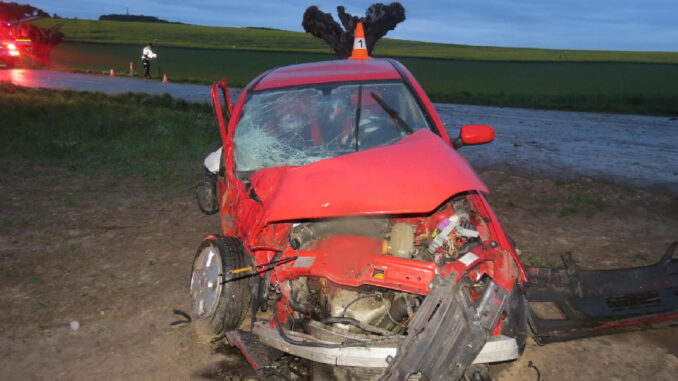 V důsledku toho vozidlo opustilo vozovku, narazilo do stromu a po nárazu bylo odmrštěno na pole vpravo od silnice. Zraněná žena byla rychle převezena letecky do nemocnice, avšak bohužel, dnes v ranních hodinách, podlehla svým zraněním.