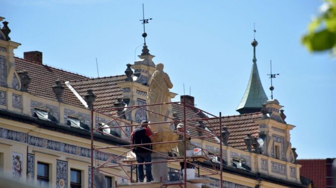 PÍSEK – Sochaři v pondělí na mariánský sloup na Alšově náměstí v Písku umístili kopii sochy Panny Marie Immaculaty a kopii podstavce – hlavice sloupu. Barokní mariánský sloup z počátku 18. století, jenž je kulturní památkou, představuje cenný doklad barokního regionálního sochařství a významně dotváří urbanistický charakter města Písku.