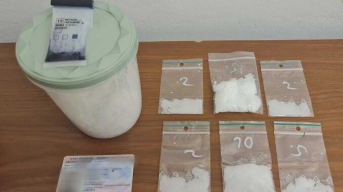 Strážci zákona si všimli v ulici Nádražní dvou osob, které se jevily jako uživatelé drog a vzájemně si skrytě předávaly nezjištěné předměty. „Policisté pojali podezření, že se může jednat o prodej návykových látek a na základě toho, oslovili nejdříve ženu, kterou vyzvali k prokázání totožnosti. Na dotaz, zda má u sebe nějaké návykové látky odpověděla, že ano. Žena uvedla, že si zakoupila celkem třicet gramů pervitinu od neznámého muže. Provedený orientační test na přítomnost návykové látky prokázal, že se skutečně o uvedenou drogu jedná,“ oznámila policejní mluvčí Kristýna Soukupová.