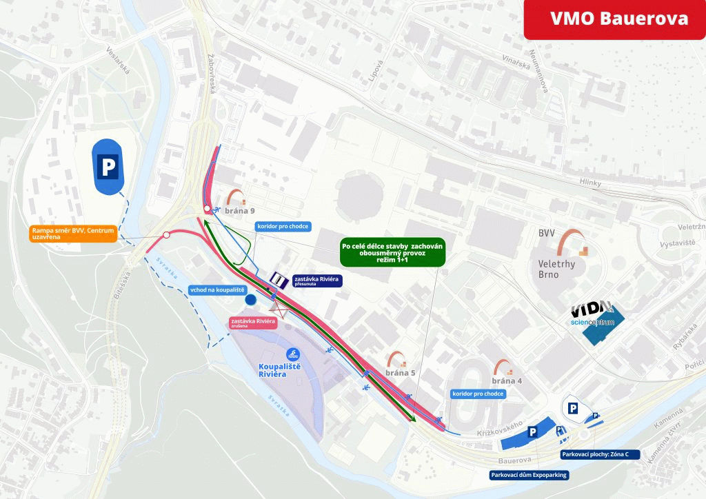 BRNO – Blízko koupaliště Riviéra pokračují práce na velkém městském okruhu i multifunkční hale. To s sebou nese omezení v dopravě a také snížení parkovacích kapacit. Sezóna koupání ale začala už v sobotu 25. května.
