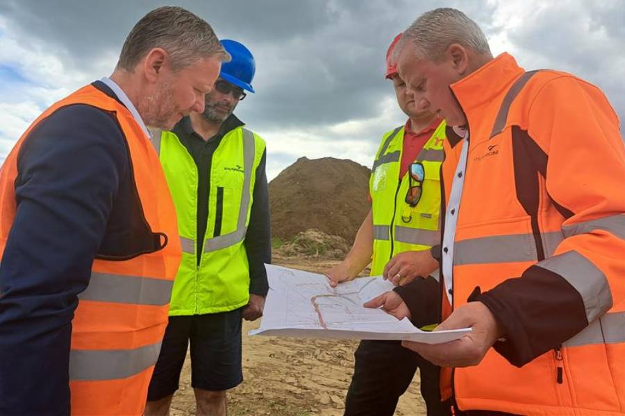 „Na východní větvi už probíhají zcela zásadní zemní práce, skrývka ornice, přípravy vyztužených náspů, pokračovat budeme založením a stavbou mostů, čekají nás i přeložky. Dva mosty v délce 47 a 49 metrů stavíme přes meliorační potoky,“ uvedl náměstek hejtmana Kraje Vysočina Miroslav Houška.