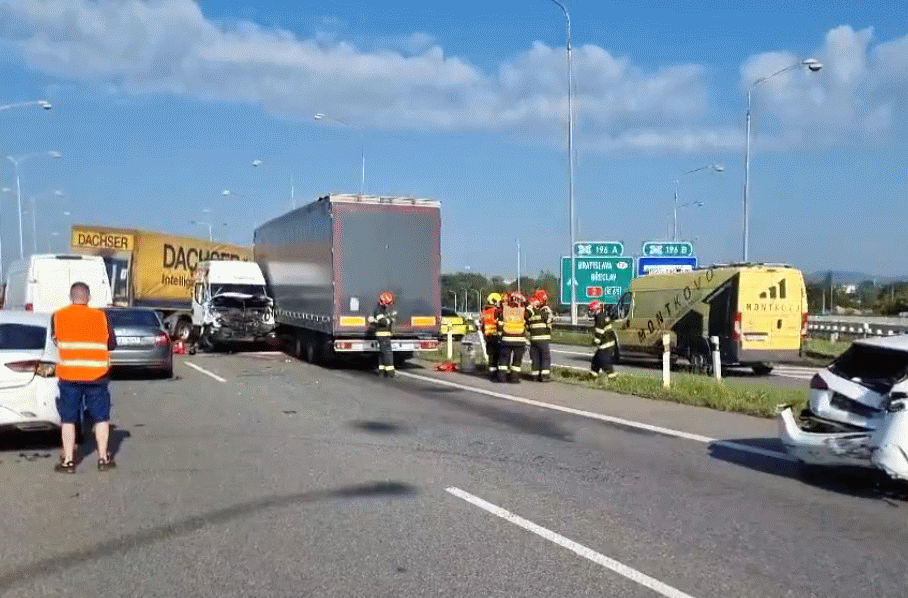 Krátce po 7. hodině ranní vyjely hasičské jednotky ze tří stanic a 7 kusů zásahové techniky k nahlášené nehodě na 196. kilometru D1 ve směru na Prahu. Hasiči po příjezdu zjistili, že z vozidel není nutné nikoho vyprošťovat. Při nehodě pěti osobních, tří nákladních vozidel a dvou dodávek se zranili 4 lidé, kteří skončili v péči záchranářů. Hasiči zajistili místo proti požáru a zasypali uniklé provozní kapaliny. Dálnice zůstala průjezdná souběžným pruhem. Dva pruhy dálnice byly nehodou zcela zablokované. „Hasiči na místě ukončili zásah v 12.27 hodin,“ uvedl mluvčí hasičů Jaroslav Mikoška.