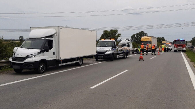BRNO-VENKOV – Dálnici D2 mezi 3. a 11. kilometrem ve směru na Brno uzavřela v pátek po třetí hodině odpoledne dopravní nehoda. Při ní se srazily dva kamiony a dvě dodávky.