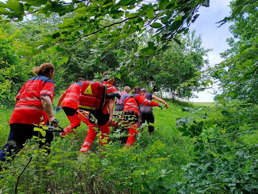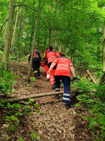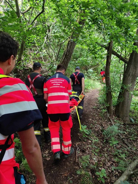 Záchranáři poklusem v terénu zdolali zhruba dvou kilometrovou vzdálenost od sanitky k pacientovi. „Vyšetřili jej a zajistili žilní vstup. Následně jej společně s hasiči vynesli k sanitce a převezli do nemocnice,“ stojí v příspěvku.
