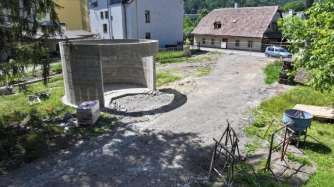V současnosti probíhají stavební práce na obnově kruhové zdi po pravé straně divadla. „Hotové jádro ze zdi ze ztraceného bednění, které zajistí stabilitu přilehlého svahu. Následně bude k této konstrukci přizděna cihelná stěna z lícového režného zdiva, která bude korespondovat s ostatními konstrukcemi v parku,“ uvedlo vedení města. Původní zeď se rozpadala a staticky nevyhovovala. Oblouková zeď je stanovena podle původního návrhu architekta Kamila Roškota a v souladu s požadavkem památkové péče. V minulosti zeď částečně zakryly keře a z vnější strany ji opticky zmenšovaly.