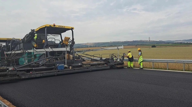 Silničáři na dálnici pokládají konečnou asfaltovou vrstvu SMA mastix, která je vysoce odolná vůči tvorbě trvalých deformací a trhlin a její předností je dlouhá trvanlivost. Kromě toho finišuje i práce na mostech. „Spíše už se jedná o dokončovací práce, jako například montáž svodidel či protihlukových stěn. Celkově budujeme mezi Starým Městem a Moravským Pískem devět mostů, z toho šest na dálnici a tři nad dálnicí. Děláme vše proto, abychom prosincový termín zprovoznění D5508 dodrželi,“ uvedl ředitel závodu Inženýrské stavitelství Morava Jiří Vinklárek ze společnosti Skanska a.s.