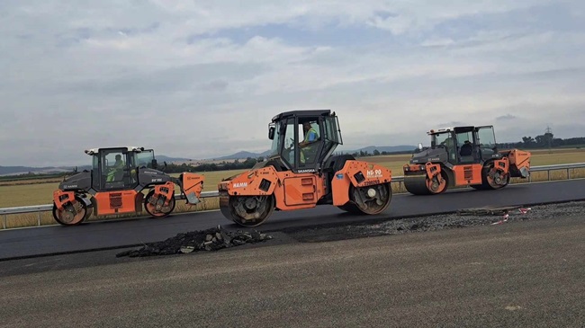 UHERSKOHRADIŠŤSKO – Stavba dálnice D55 mezi Starým Městem a Moravským Pískem míří ke zdárnému konci. Dokládá to fakt, že Ředitelství silnic a dálnic ČR tu pokládá finální asfaltovou vrstvu ve tříkilometrovém úseku mezi oběma městy.