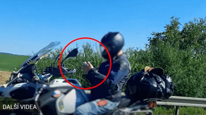 VIDEO: Motorkář jel s telefonem v ruce a nedržel řídítka