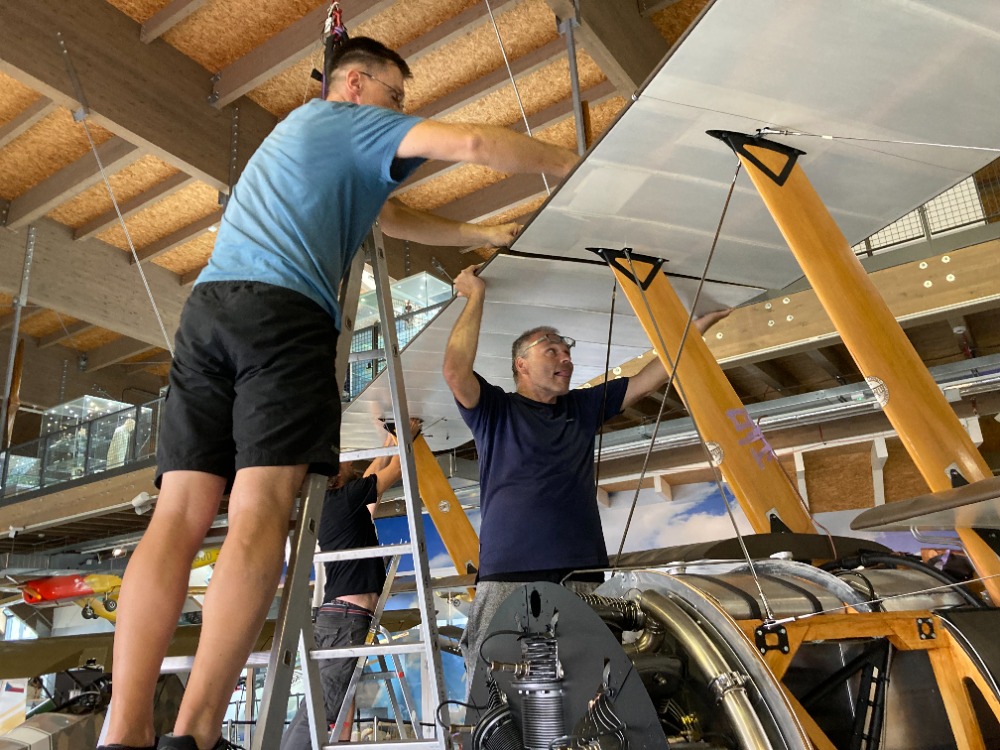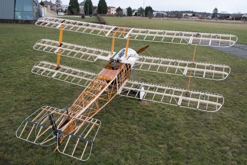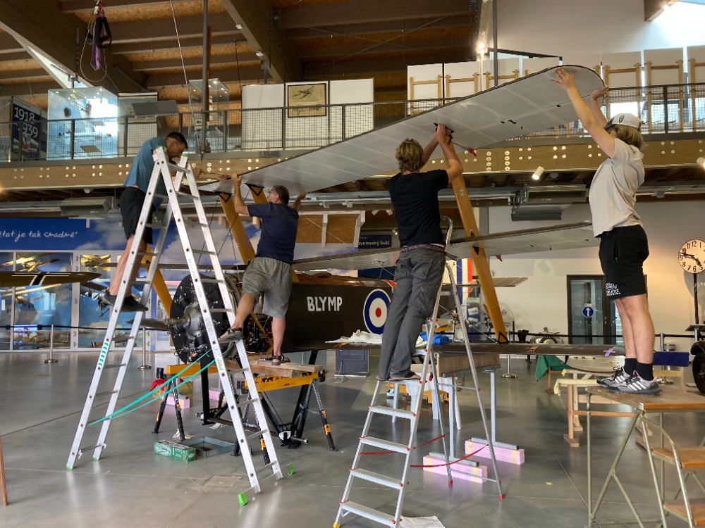 MLADÁ BOLESLAV | V leteckém muzeu Metoděje Vlacha v Mladé Boleslavi vzniká replika unikátního historického letounu Sopwith Triplane, jehož originál létal na frontě v období první světové války. Stavba stroje, která probíhá třetím rokem, je dokončována přímo v expozici leteckého muzea a vstupuje do závěrečné fáze. Na začátku srpna modeláři dokončovali montáž křídel na trup a jejich upevnění originálními profilovými dráty, které drží celý letoun pohromadě. Ty byly objednány ve Skotsku a dodavatelská firma měla ještě z období let 1916–1917 potřebné délky profilových drátů, které tehdy dodávala továrně Sopwith.