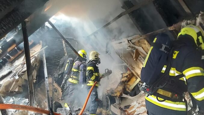 ŠUMPERSKO – Hasiči dnes v noci hasili požár střechy a podkroví rodinného domu v Sudkově na Šumpersku. Jeden člověk se při požáru zranil, hasiči ho předali zdravotníkům.