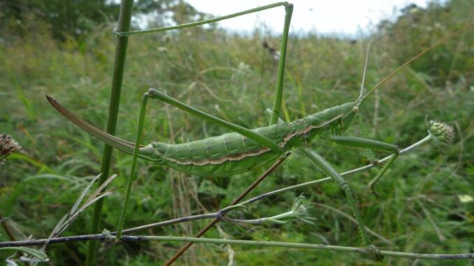 BŘECLAV – Pozdní léto, přecházející v podzim, je obdobím, kdy se na pálavských stepních lokalitách můžete setkat s naším největším zástupcem rovnokřídlého hmyzu, vzácnou kobylkou ságou (Saga pedo).