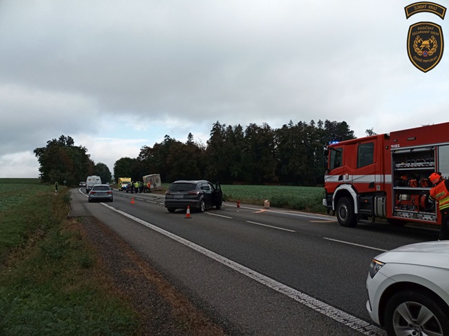 Havárie se stala po osmé hodině ranní na silnici I/50 u Buchlovic. „Dvaapadesátiletý řidič fordu se patrně plně nevěnoval řízení a zezadu narazil do zpomalujícího nákladního vozidla, jehož řidič se řadil do kolony před ním. Při dopravní nehodě utrpěl zranění spolujezdec i oba řidiči. Všichni byli z místa převezeni záchrannou službou do Uherskohradišťské nemocnice k ošetření,“ popsal policejní mluvčí Radomír Šiška.