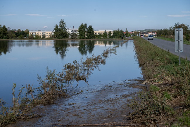 KROMĚŘÍŽ – Po nedávných záplavách se v okrajových částech Kroměříže objevily propady podmáčené půdy. Zaplavená zůstávají i dvě hřiště v areálu fotbalového stadionu.