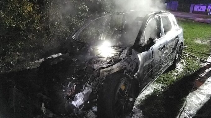PŘEROVSKO – Luxusní Porsche zaparkované před domem shořelo dnes ráno na Přerovsku. Požár hasili profesionální i dobrovolní hasiči, auto však bylo plameny zcela zničeno.