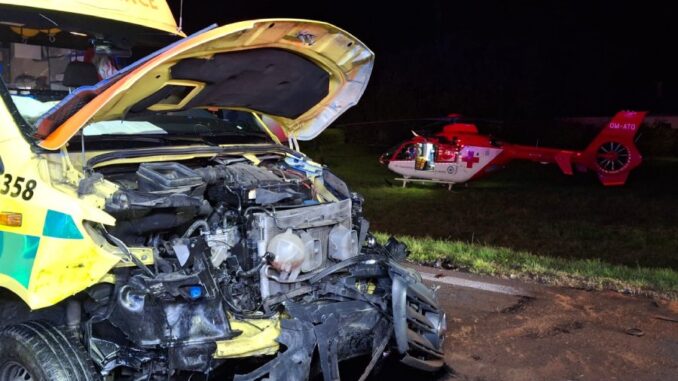 V Dobré auto narazilo do sanitky, letěl vrtulník