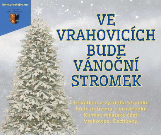 Ve Vrahovicích, severovýchodní části Prostějova, budou mít letos svůj vlastní vánoční strom. Osvětlení a výzdoba stromku bude pořízena z prostředků Komise městské části Vrahovice, Čechůvky. Sbor dobrovolných hasičů ve Vrahovicích se obrátil na tuto komisi se žádostí o poskytnutí daru na pořízení osvětlení vánočního stromu ve Vrahovicích ve výši 100 tisíc korun. „Komise městských částí disponují svými finančními prostředky a toto je jeden z projektů, které konkrétně tato komise doporučila,“ vysvětlil primátor města Prostějova František Jura.