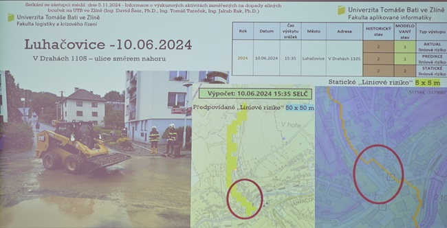 „Tato metoda nám dokáže upřesnit předpověď včetně aktuálního odhadu nebezpečí přívalových povodní. Aplikace počítá s terénem v daném místě, sklonem, druhem půdy i její nasyceností a schopností absorbovat vodu. Dokáže vypočítat, kudy v případě přívalových povodní poteče voda a v jakém množství,“ dodává Jakub Rak z Fakulty logistiky a krizového řízení, který na projektu rovněž pracuje.