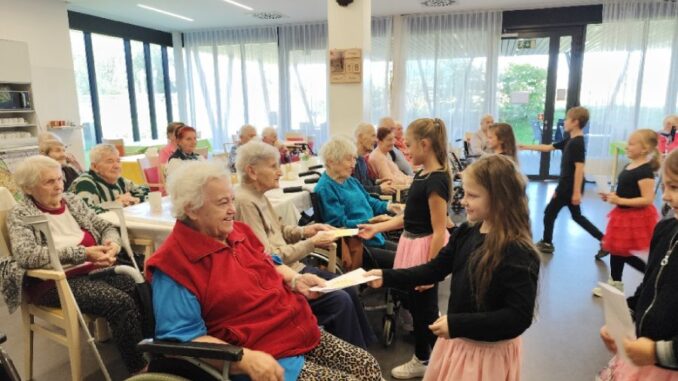 HAVÍŘOV – Děti z druhé třídy Základní školy Moravská v Havířově pravidelně přináší radost a energii seniorům do domova SeneCura. Naposledy jeho obyvatelům předvedly několik moderních tanců na melodie populárních písní. Jejich nadšení okamžitě seniory okouzlilo, dokonce si s dětmi i zazpívali.