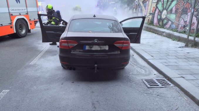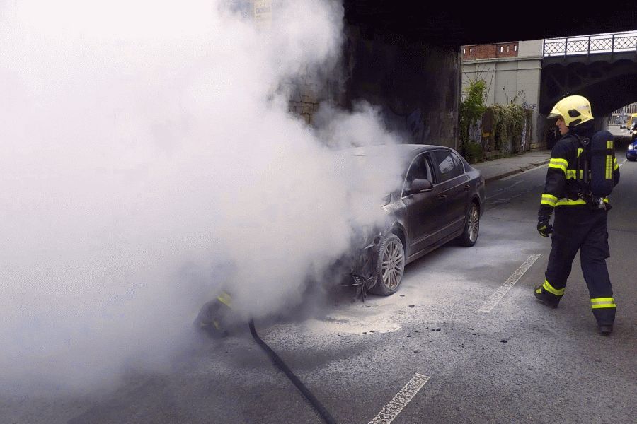 BRNO – V úterý dopoledne zasahovali hasiči u požáru osobního auta v Brně na ulici Hybešova. Před jejich příjezdem již na místě pomáhala kolem projíždějící posádka záchranářů, která použila přenosný hasicí přístroj.