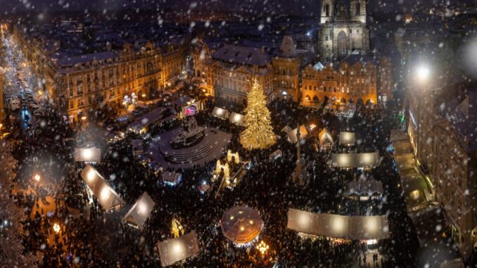 PRAHA – Staroměstské náměstí se tuto sobotu ponoří do sváteční atmosféry během slavnostního rozsvícení vánočního stromu. Dvaadvacetimetrový smrk ozdobený čtyřiceti zářícími anděly a 4,5 kilometru LED světelných řetězů se rozsvítí v 18 hodin. Ve stejný den začnou také vánoční trhy na Václavském náměstí. Stánky nabídnou řemeslné výrobky i občerstvení, jako jsou trdelníky či svařené víno. Další informace najdete na www.trhypraha.cz.