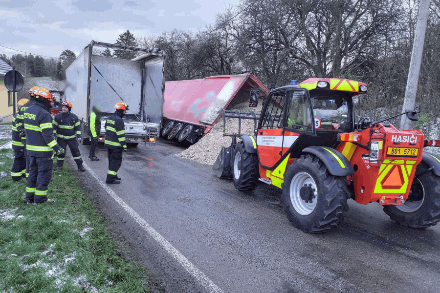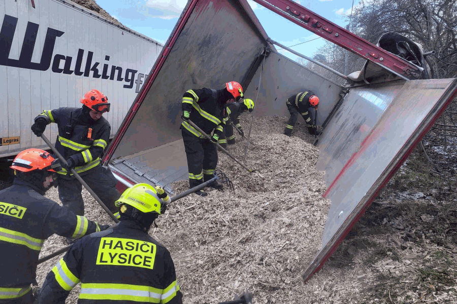 Hasiči ve čtvrtek pomáhali u nehody kamionu, který vyjel ze silnice. Událost byla bez zranění. Hasiči zajistili odlehčení návěsu tím, že přeložili materiál. Dále uvolnili prostor pro vyproštění pokácením stromu. Také zachytili provozní kapaliny. Silnice na Lysice byla neprůjezdná. „Vozidlo jsme vyprostili. Uklidili jsme silnici a komunikace je opět průjezdná. Náš zásah na místě trval sedm hodin,” uvedli hasiči na síti X.