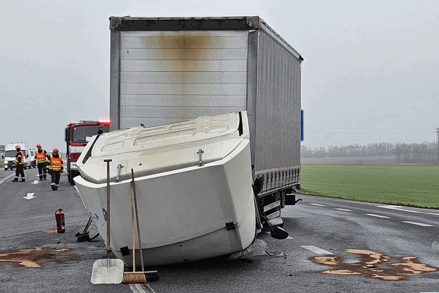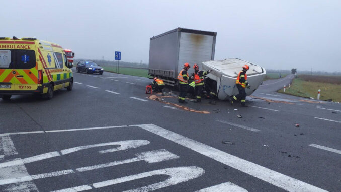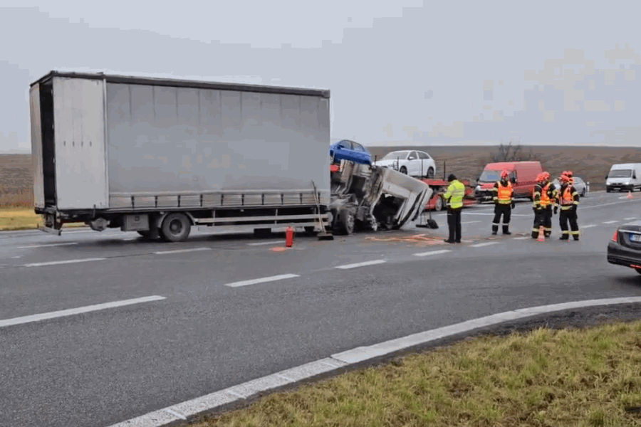 Na silnici I/53 v křižovatce na Miroslav zasahovali v pondělí před polednem hasiči u nehody dvou kamionů. Jeden řidič skončil v péči záchranářů. Silnice na Znojmo byla několik hodin neprůjezdná. „Zajistili jsme místo proti požáru a zasypali uniklé provozní kapaliny sorbentem. Zpomalte také na mostech, kde vozovka může namrzat. Jezděte opatrně a nezapomínejte přepínat z denního svícení na klasická světla, když je snížená viditelnost,” napsali hasiči na síti X.
