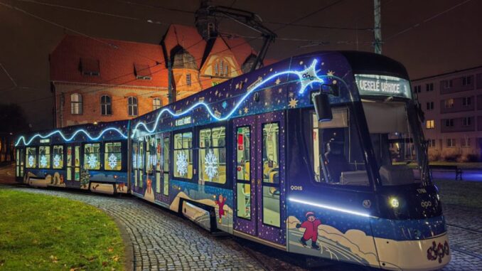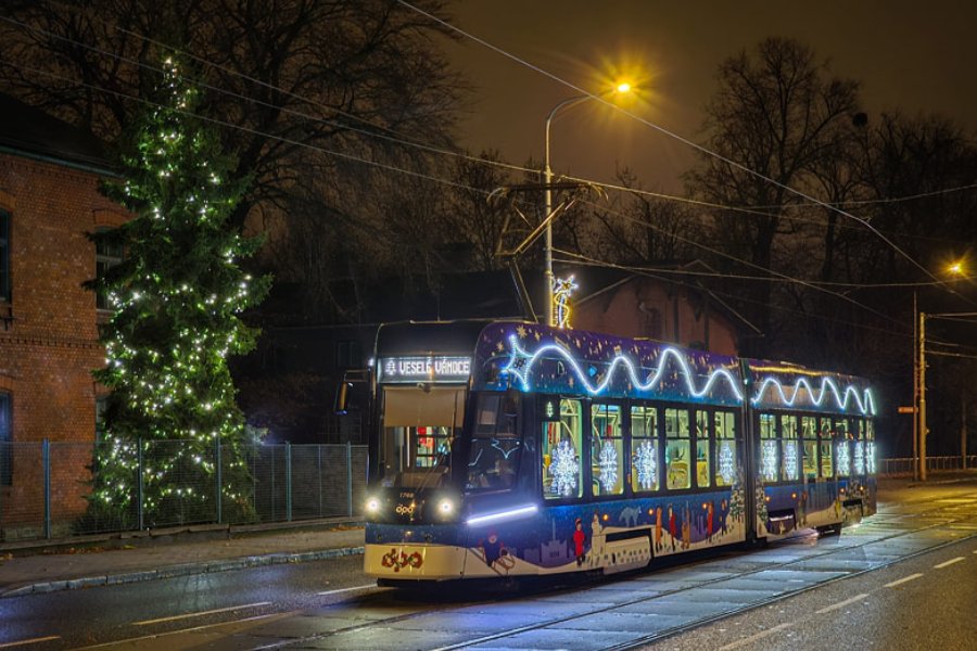 OSTRAVA – Na vánoční náladu se už naladili také v Ostravě. Začínající advent lidem v ulicích zpříjemňuje vánoční tramvaj. Na cestující, kteří se s ní svezou, navíc čeká i vyzdobený interiér, hrající koledy, svítící vánoční stromeček a v průběhu adventu i program zahrnující například hudební vystoupení. Ostravská „Vánočka“ jezdí napříč městem, různými linkami, podle speciálního jízdního řádu od 2. prosince do konce ledna 2025.