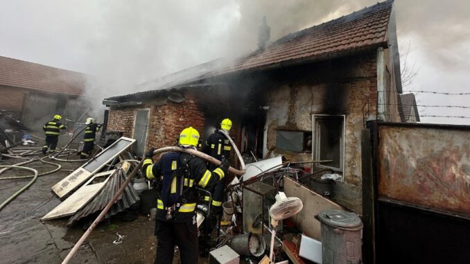 LEDČICE – Rodinný dům v Ledčicích zachvátily v úterý ráno plameny. Na místě zasahovaly desítky profesionálních i dobrovolných hasičů, kteří bojovali nejen s ohněm, ale také s nebezpečím výbuchu plynové lahve, která se nacházela v kuchyni. Muže, který utrpěl vážné popáleniny, odvezla záchranka do nemocnice v Roudnici nad Labem.