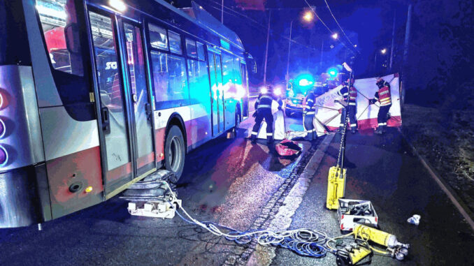 BRNO – V úterý po sedmé hodině večer vyjely jednotky ze stanic Přehrada, BVV a Lidická na ulici Odbojářská v Brně ke střetu trolejbusu s chodcem. Chodec zůstal zaklíněn pod zadní nápravou vozu.
