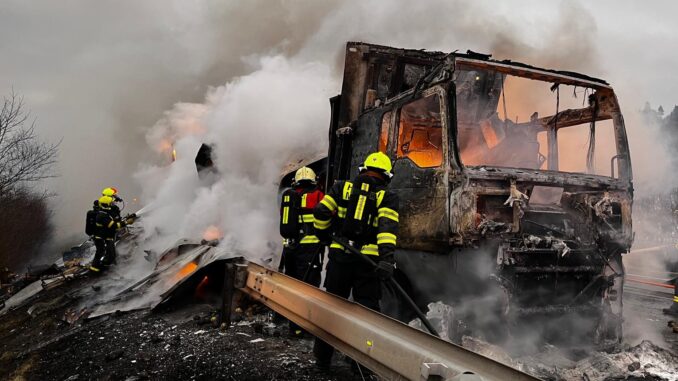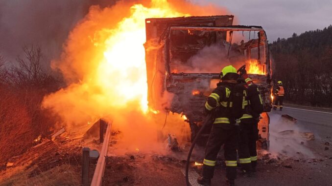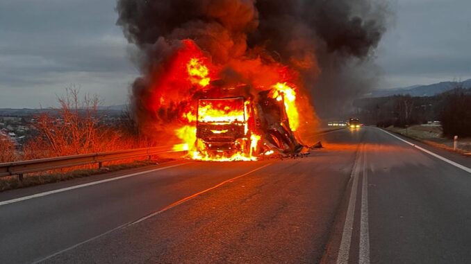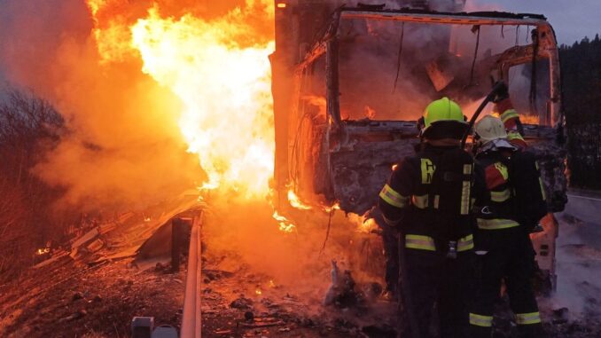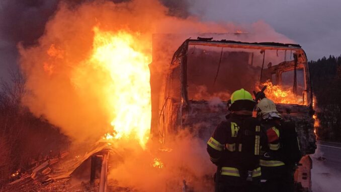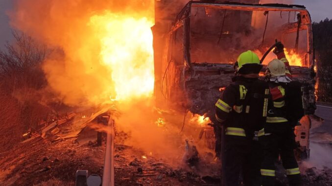Operační středisko hasičů dostalo informaci o požáru nákladního automobilu, na silnici ve směru na Slovensko, krátce po 7 hodině. Na místo vyjela jednotka hasičů ze stanice Třinec a spolu s ní na místo vyjížděly jednotky sboru dobrovolných hasičů z Jablunkova a Mostů u Jablunkova. „Nákladní automobil začal hořet za jízdy, řidič stihnul kabinu opustit včas a událost se proto obešla bez zranění. Po příjezdu jednotek na místo kamion již zcela pohltily plameny,“ sdělila mluvčí hasičů Petra Lukášová.