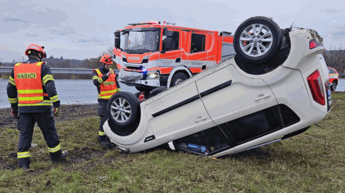 HODONÍN – V neděli odpoledne havarovalo mezi Hodonínem a Dubňany osobní auto, které zůstalo převrácené mimo silnici. Řidič měl zákaz řízení.