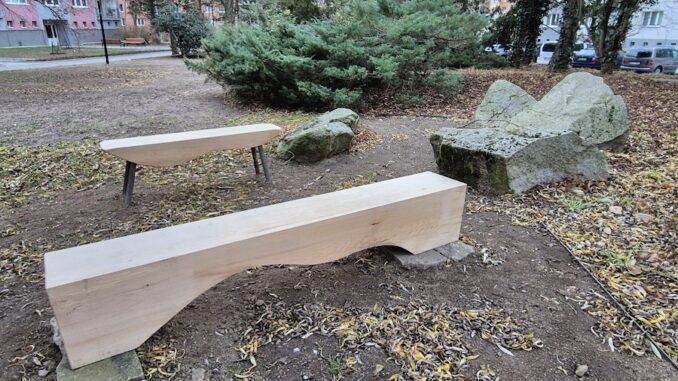 Architekti z Projectstudio8, kteří návrh vytvořili, kladli důraz na propojení požadavků všech generací. Přáním místních obyvatel bylo zejména vylepšení hřiště, přidání odpočinkových míst a kultivace zeleně. „Z jednoho kmene bukového dřeva se podařilo vytvarovat dvě lavičky, které stojí naproti sobě. Lidem nabízejí příjemné odpočinkové místo,“uvedl architekt Ondřej Janout.