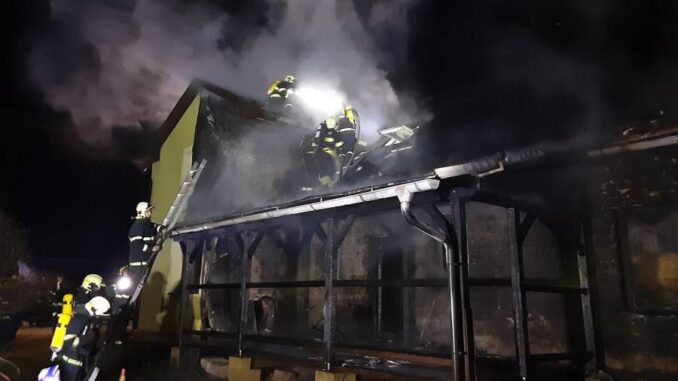 Hlášení o požáru přijali hasiči v sobotu 25. ledna v 00:46 hodin. „Provedeným průzkumem místa zásahu bylo zjištěno, že se jedná o požár rodinného domu a přístavby,“ uvedla mluvčí krajských hasičů Petra Musilová.