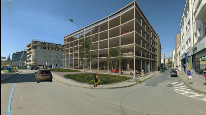 BRNO – V prostoru původního dlouhodobě využívaného parkoviště se závorami mezi ulicemi Křenová, Vlhká a Skořepka vznikne nový parkovací dům. 18. března byl slavnostně poklepán základní kámen.